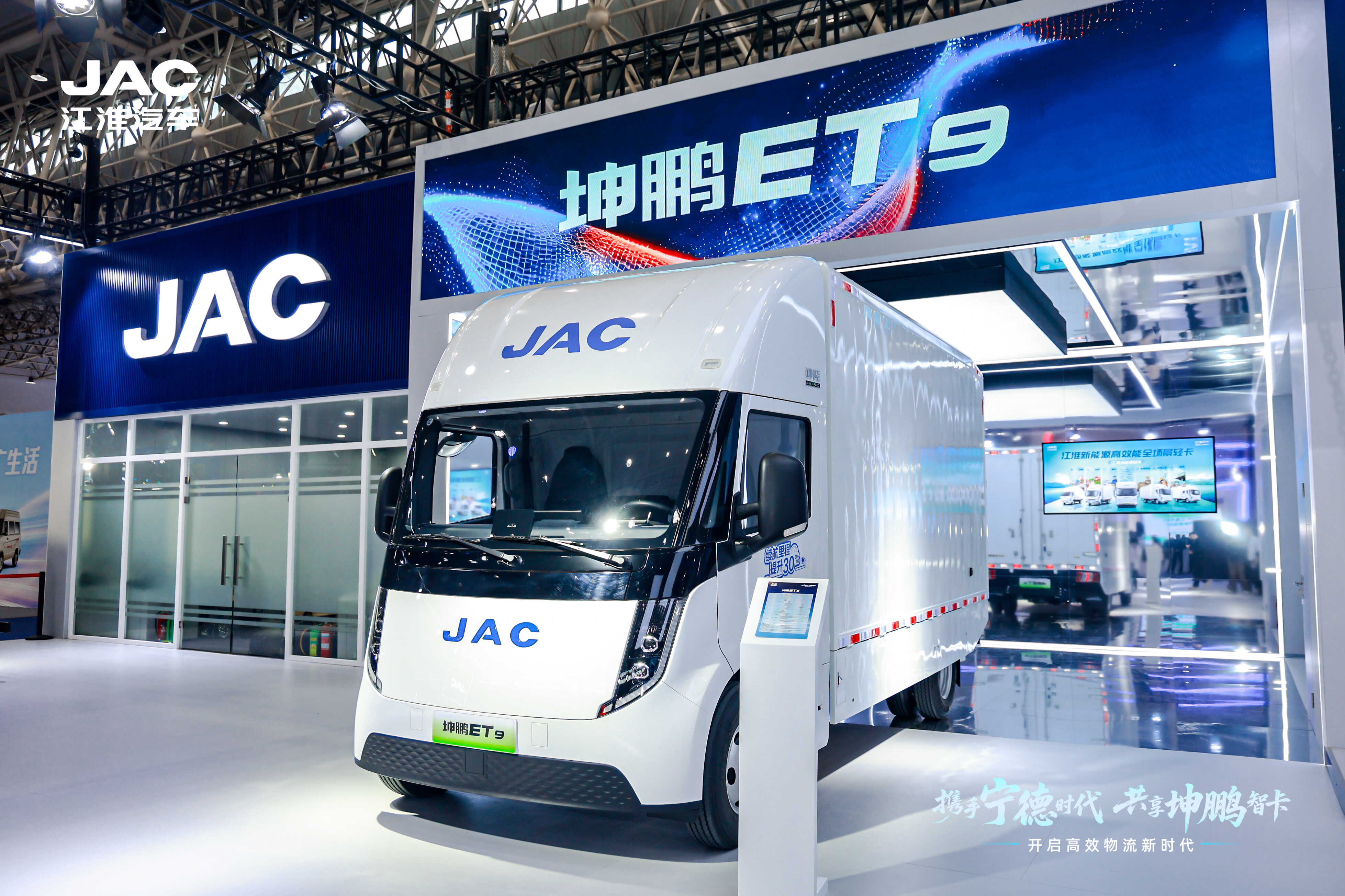 江淮汽车携手宁德时代发布了坤鹏ET9,旨在凭借在造型、电池、电机、电控、热管理五大方面实现核心技术创新,解决新能源轻卡用户当下的痛点,为用户带来更省时、更省钱、更省心、更安全、更舒适、更便捷六大维度的颠覆性增值体验,成为解决“里程之困、成本之重、效率之低”三大核心痛点的高效物流车品牌。