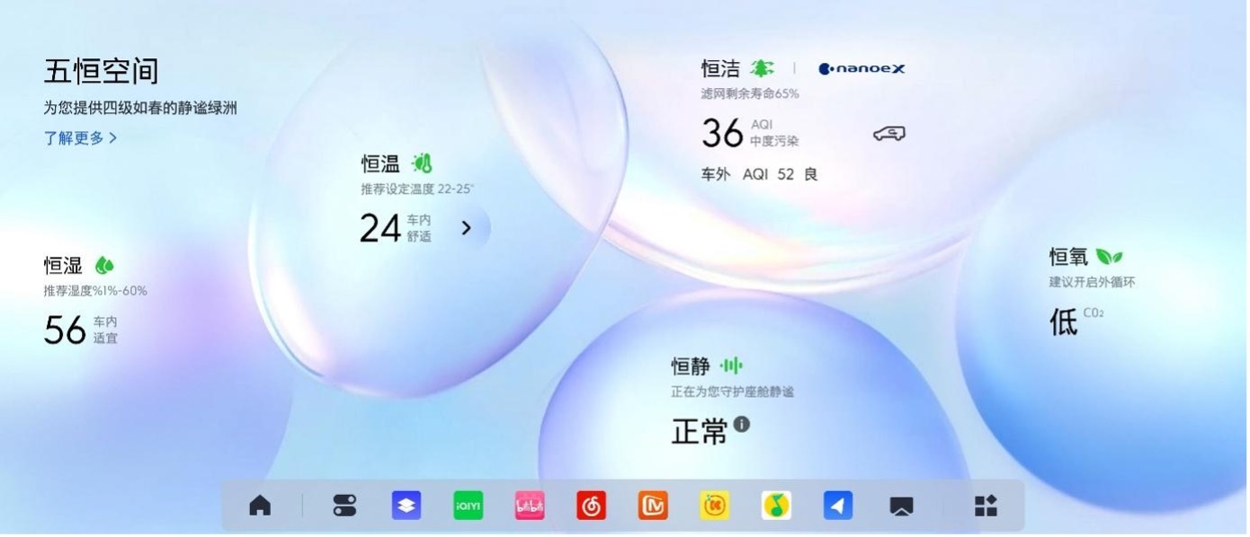 首先聚焦至境世家搭载的“五恒”大健康座舱,其集成恒温、恒湿、恒氧、恒洁、恒静五大功能。