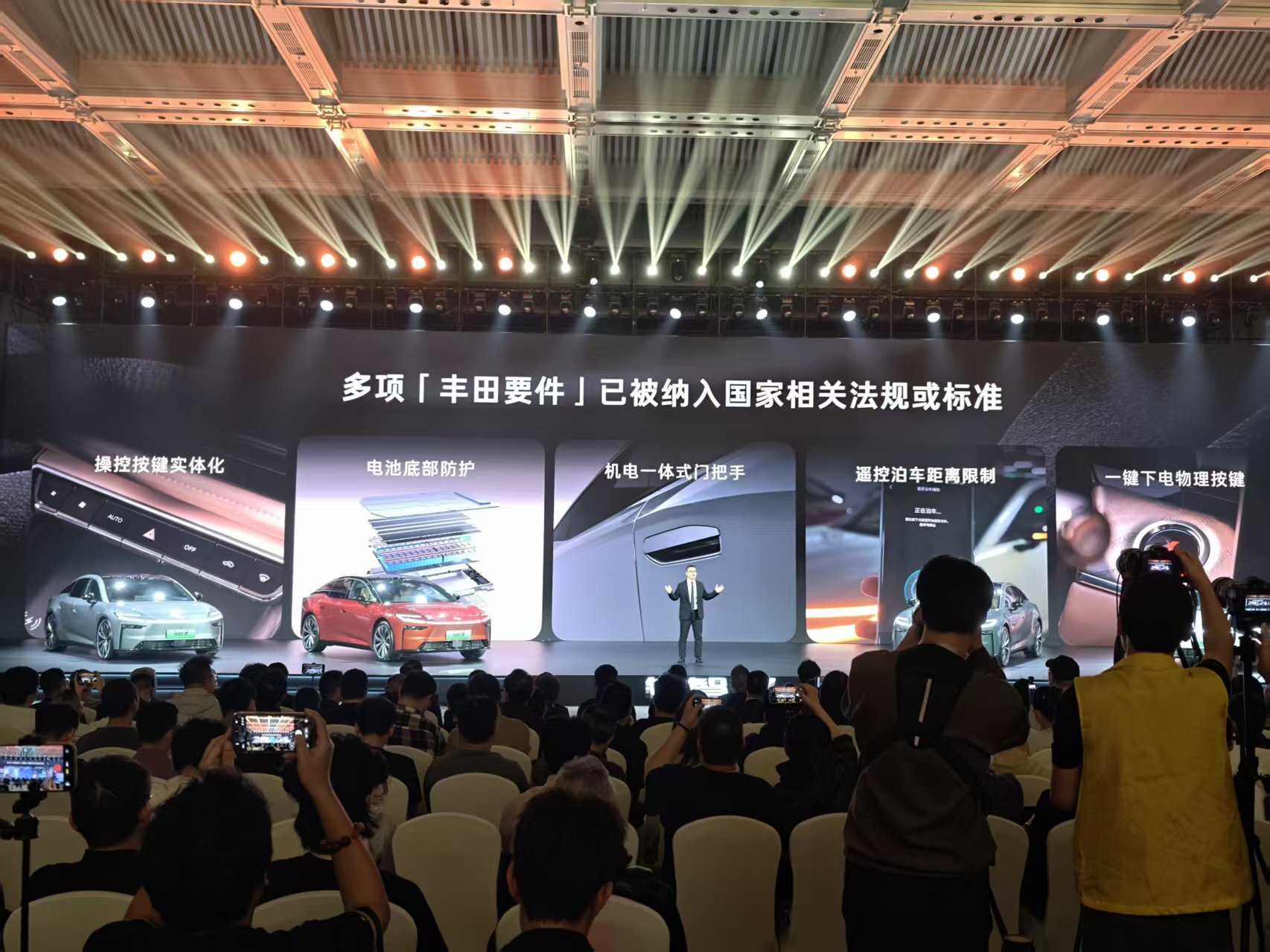 铂智7认为,不是出了问题再补救,而是在设计阶段就预设失效点,提升冗余安全,把所有可能的失效模式都堵死。铂智7传承丰田高QDR基因,始终坚持“超标验证、超前达标”。多项耐久试验超行业标准2倍。电池安全挑战电芯锯切实验,不起火、不爆炸。整车高强度钢铝合金占比73%,最高强度2GPa。华为DriveONE电驱融入丰田安全要件,在设计阶段预设所有失效模式,将传动轴断裂点预设于电驱壳体内部,防止部件入侵乘员舱。门把手机电一体式设计,提前满足2027年新国标,任何时候,找得到、拉得开。