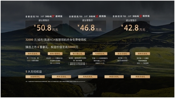 自坦克300走红以来,品牌快速完善产品矩阵,产品远销全球30多个国家和地区,成为中国越野走向世界的代表性符号。全新坦克700的上市,不仅是一款车型的落地,更代表中国品牌在40万至50万元高端SUV市场,与传统豪华品牌和新势力正面角逐的底气,以原创文化设计、自研动力架构、全域智能科技与全维豪华配置,重新定义高端越野的价值标准,同时跳出行业参数内卷的竞争模式,转向以生活方式、身份认同与生态服务为核心的高阶价值竞争。