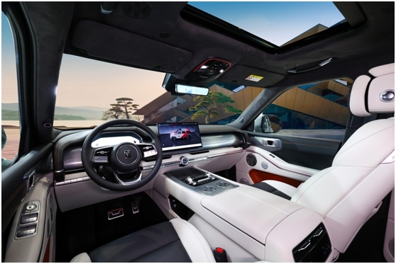 智能化方面,新车在非承载式车身架构上搭载VLA大模型,搭配 Coffee Pilot 4.0智驾系统,可实现更贴合日常用车的口语化交互与复杂路况决策,座舱内配备全员通风加热按摩座椅、7.1.4杜比全景声音响、智能冷暖冰箱、后排大尺寸娱乐屏等配置,将豪华舒适体验拉满,实现硬派实力与细腻体验的统一。