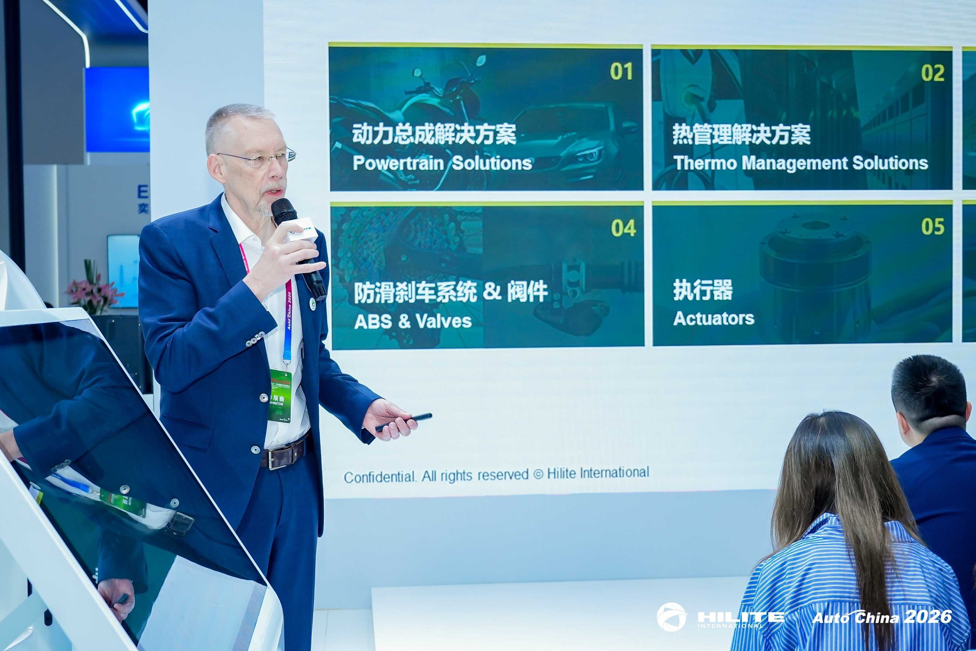 随后,海力达全球工程研发副总裁Dr. Schilling发表主题演讲,深度解读企业在动力总成、热管理、氢能及前瞻技术领域的最新研发成果与全场景技术解决方案。通过多元化产品平台展示,海力达全面展现从核心零部件研发到系统集成落地的全栈技术能力,传递出为全球下一代电动化、多元化出行场景提供核心技术支撑的坚定承诺。