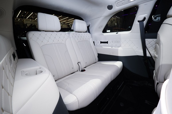 空间上,长轴版轴距3150mm,得房率70.2%,192mm中央通道方便穿行,6座状态可容纳5个20寸行李箱;配备22点位零重力按摩座椅、三排遮阳帘、48处储物空间,以及副驾与二排门板手机充电座带下车提醒等家庭友好配置。