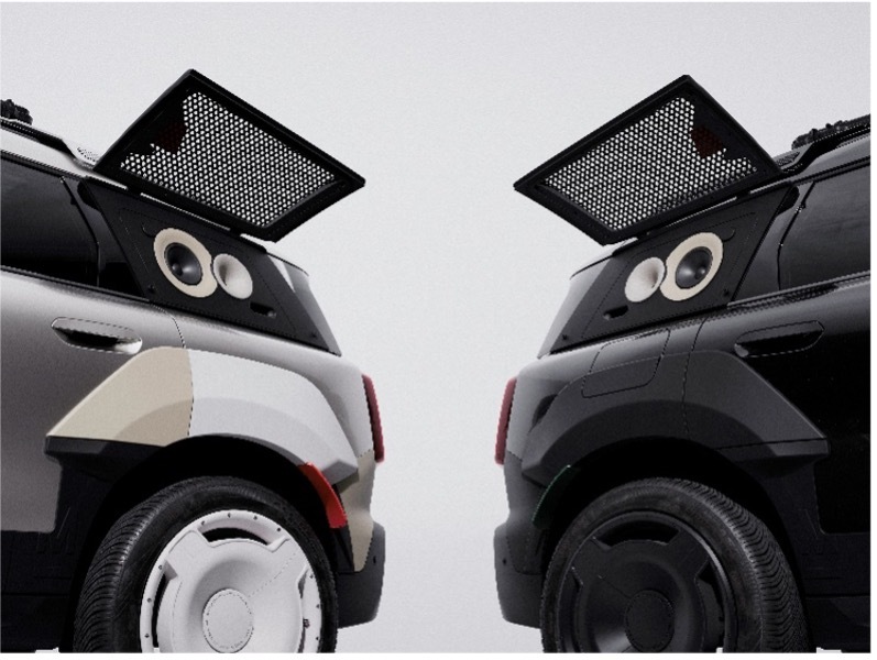 多个高音、中音音箱直接集成于车身部分,而低音和超低音音箱则被放置在车尾,尤其当为尾门打开时,低音单元所营造的低频共鸣更具震撼力。在这番操作下,MINI×Vagabund创意展车单车即可作为一套声场辽阔的独立系统;当两辆展车协同工作时,更能瞬间营造出一个开放、沉浸的巨大户外派对现场。这种随时随地“圈地开趴”的共享舞台理念,正对当下中国年轻人的胃口——用社群集结热爱,用共享体验点燃生活,将成为势不可挡的新浪潮。