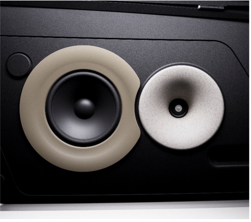 与此同时,Vagabund设计师移除了创意展车的后侧车窗,将专业级户外定制音响系统直接嵌入车身。这套系统的核心是一个特制的音箱,其箱体采用了顶级音响青睐的“铸造聚合物花岗岩”材质。这种高密度矿物复合材料赋予了箱体极佳的“声学惰性”,无论声波如何轰炸,箱体稳如泰山,为精准、纯净的声音再现提供了理想的声学条件。不仅如此,这种致密无孔的材质通过定制浇铸工艺与车身实现了无缝嵌合,更赋予了音箱防潮耐候性,无惧户外极端环境考验。