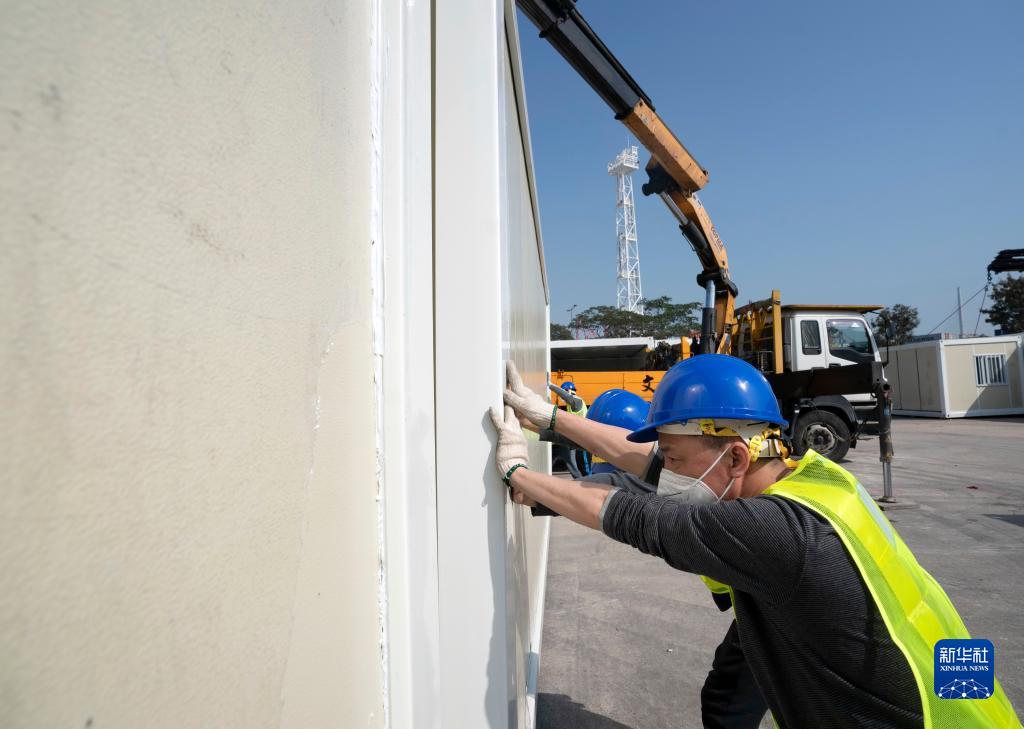 工作人员在青衣方舱医院施工(2月26日摄)。新华社记者 吕小炜 摄