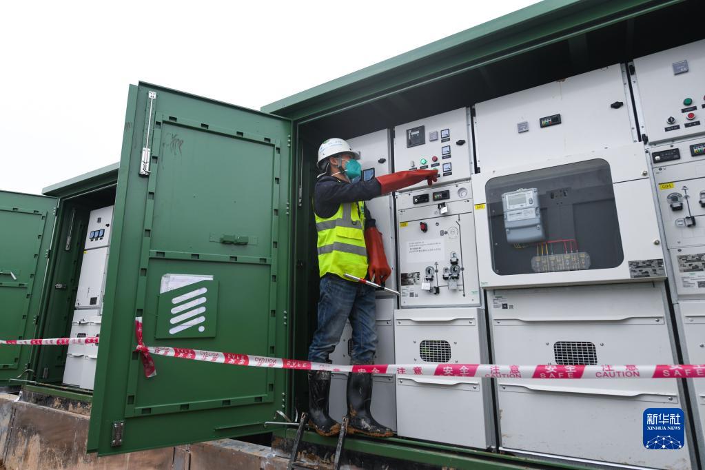 3月29日,中建科工工作人员按下合闸按钮,中央援港应急医院项目一期电路全面接通。
