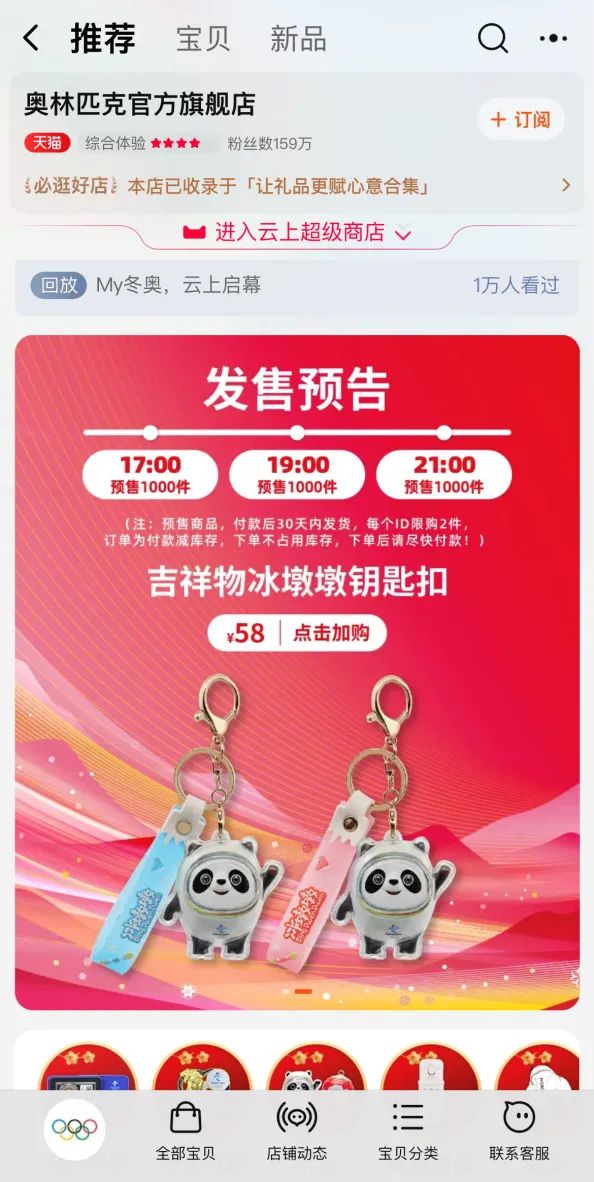 阿里巴巴最新发布的《虎年春节消费趋势报告》显示,随着北京冬奥会开幕,超100万网友涌入奥林匹克天猫官方旗舰店,多款冰墩墩周边商品一夜售罄。