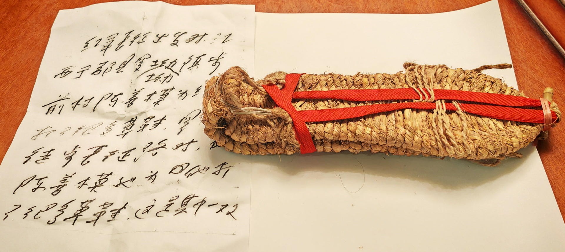 2025年11月2日,徐解秀阿婆孙子朱分永捐赠的90年前爷爷帮助红军打的“草鞋”样式(作者摄)