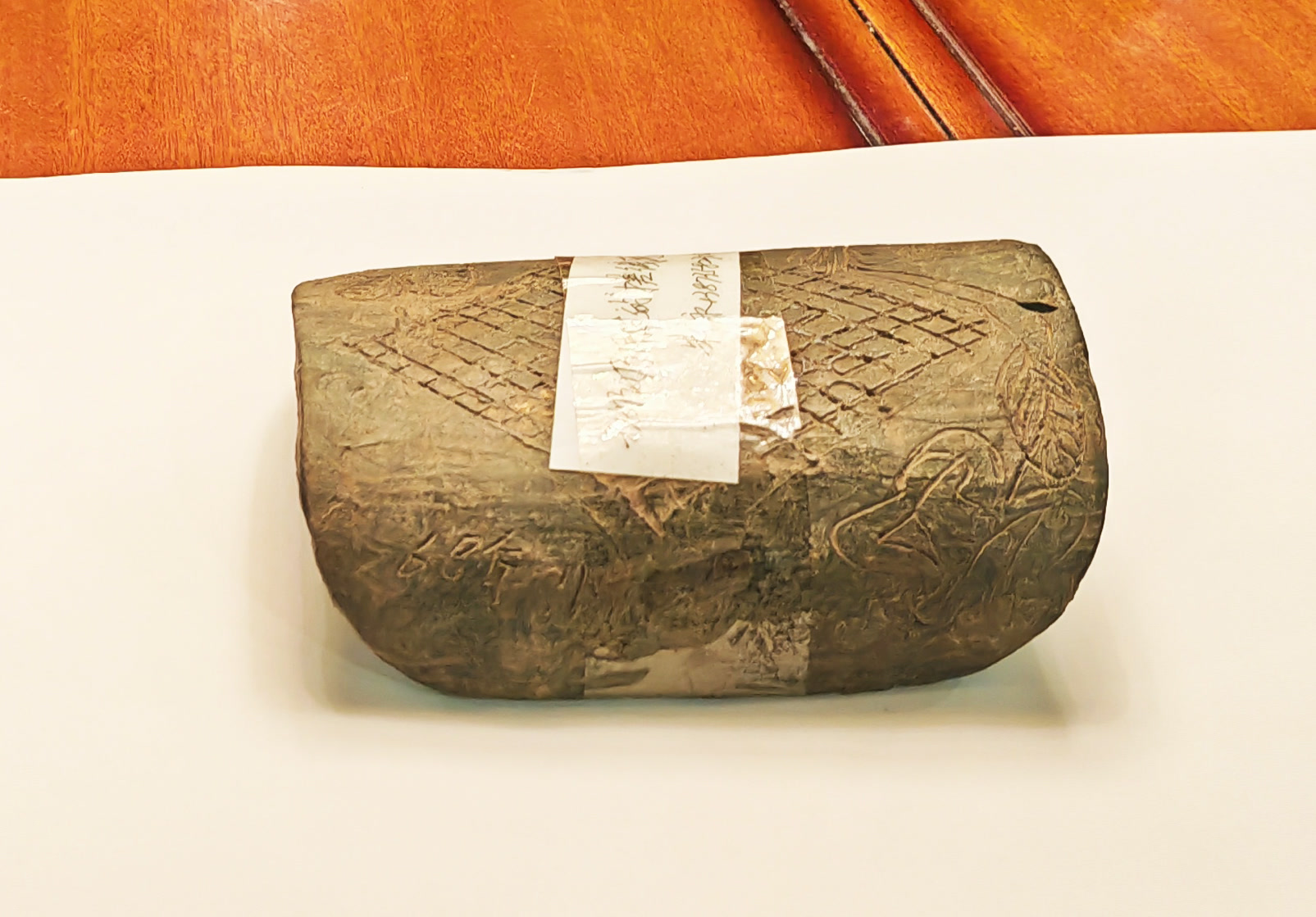 2025年11月2日,徐解秀阿婆孙子朱分永捐赠的90年前老物件“搓线瓦”(作者摄)